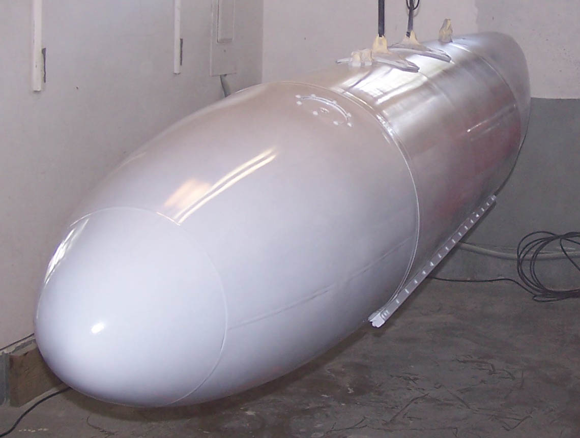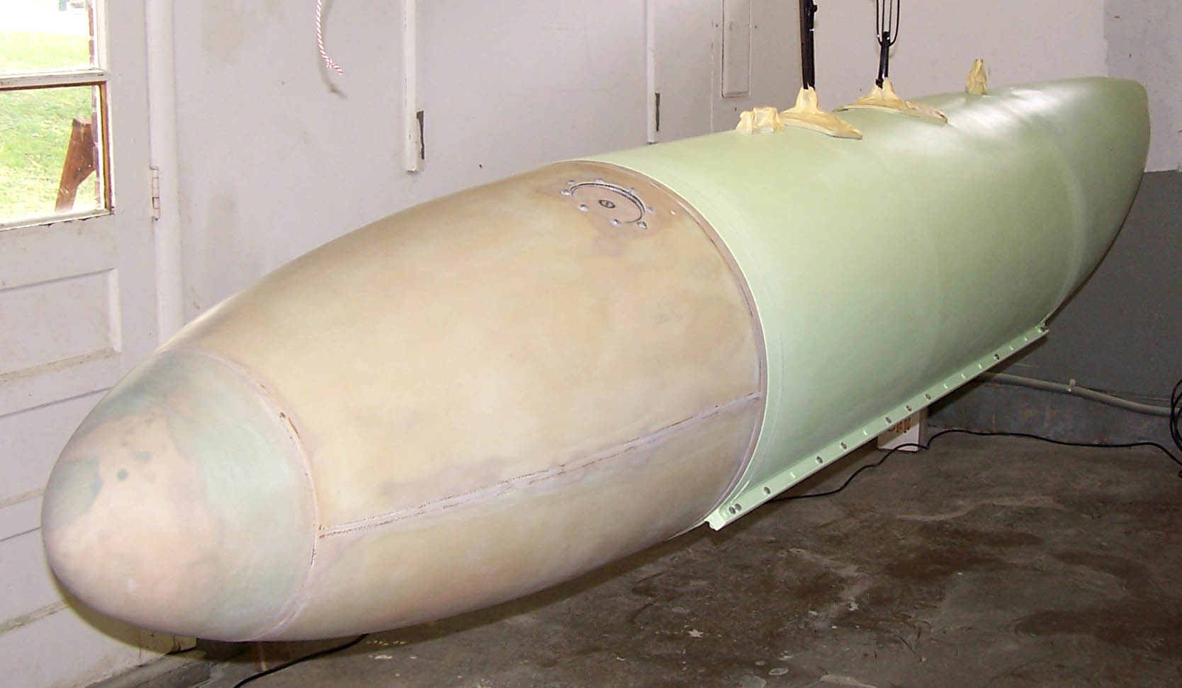 Mike McConnell picked up the tank and drove it home after work -- no problems. Figure 3 shows the tank after Mike had spent three months working on it during weekends. Apparently, a scrapped tank gets little respect during its storage years. Sometime during those scrap years, it had been dropped on its nose. Aside from the fact that the rough handling produced a sizable dent on the lower front bottom segment, the nose section was no longer aligned properly. The months of work finally paid off ... the nose and center sections look new. (Actually, they basically ARE new. In fact, they are BETTER than new.) The nose section is finally "in spec" again, the center section is actually round and dent-free, and the tail end is beginning to look respectable.