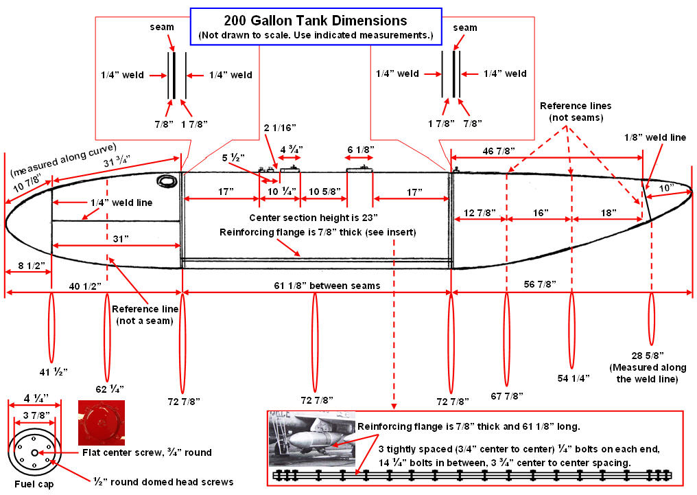 For the serious aircraft modelers among you, Figure 8 shows the 200-gallon tank's dimensions. The measurements -- to the nearest 1/32 inch -- have been made multiple times to try to be as accurate as possible. To make sure that I could duplicate the tank accurately, I have also taken numerous detail photos.