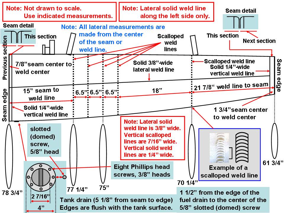 Working on the two 275-gallon tanks consumed an enormous amount of time, but it also provided a really good preparation for the major fuselage work. In retrospect, it would have been a lot simpler -- and cheaper -- to take the detailed drawings and the few salvaged scrap pieces to a good boat yard that builds metal pontoon boats. Never mind the second thoughts ... working on the 275-gallon tanks was never boring and it sure kept me off the street and out of trouble!