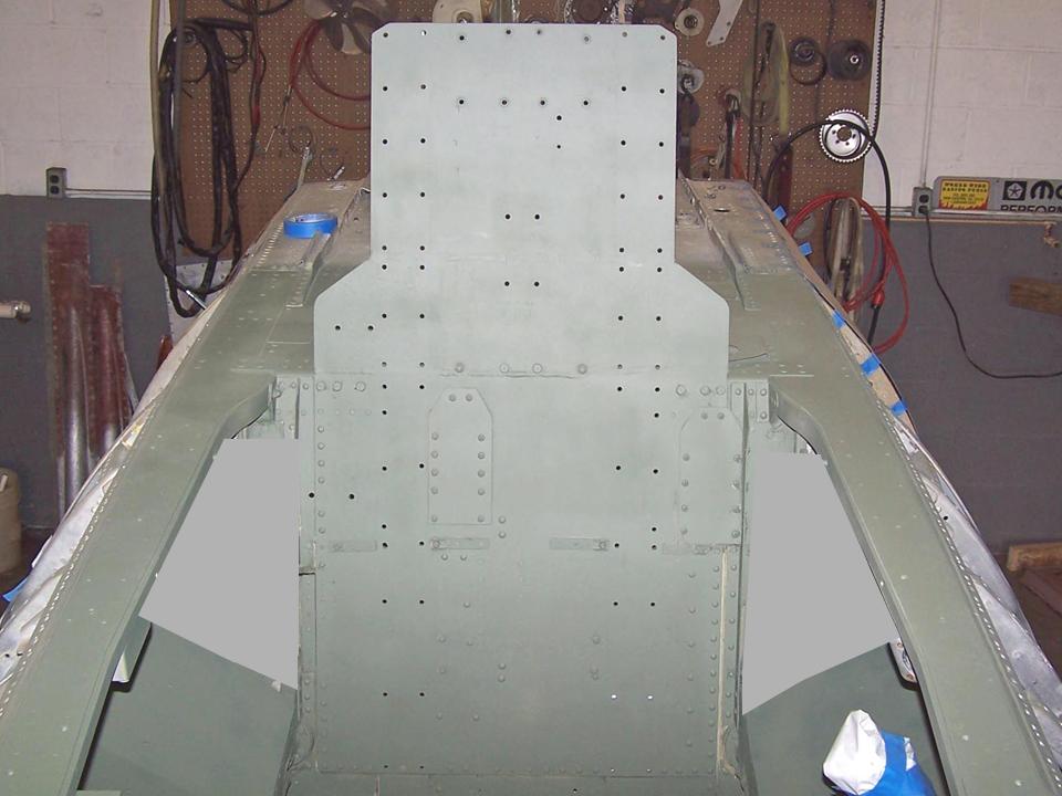 While the work on the cockpit tub and the instrument panel was progressing, I was busy with the ejection seat. First job: to get the armor plate behind the ejection seat ready. (The ejection seat fits against this plate.) Figure 2, cell 01, shows the new armor plate with its first coat of self- etching primer. The armor plate has already been bolted to the frame. Note that the holes in the back of the plate will serve to anchor the ejection seat rails.
