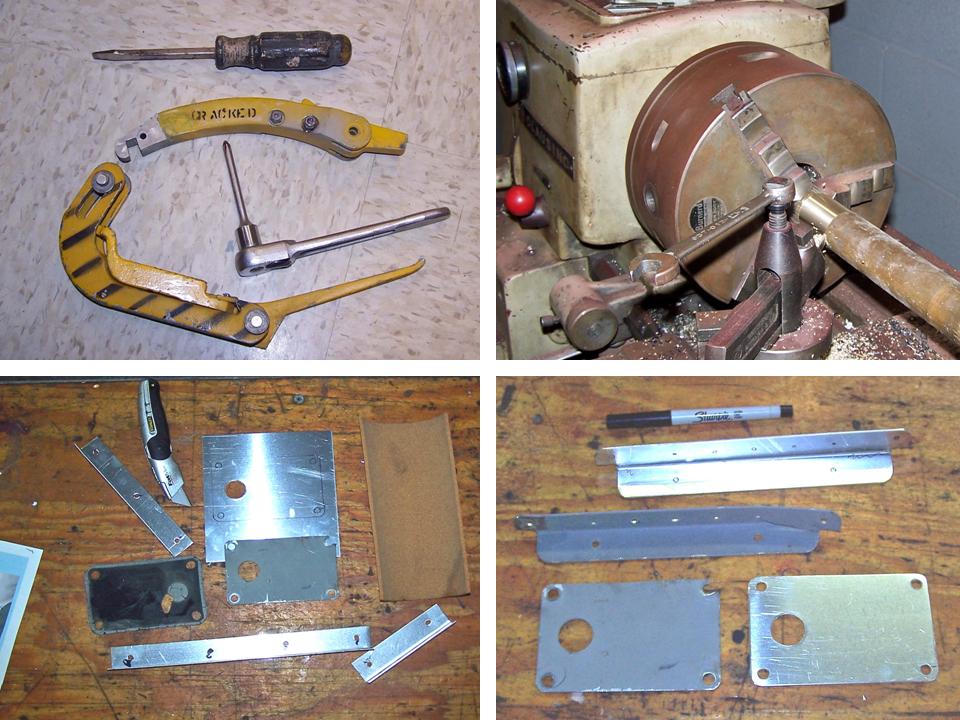 The big pieces you see in Figure 2, cells 01 and 02 were the easy part. The ejection seat has many small parts and those had to be worked on. Cell 03 shows a collage of a (cracked) ejection seat handle, some damaged pieces and their replacements. Steve and I wound up making a lot of new parts to replace the damaged or missing pieces.