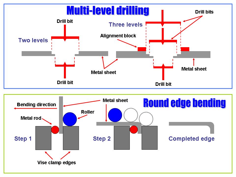 Naturally, the techniques you see illustrated in Figure 3, cell 01, are only a few of the tricks of the metal construction trade. If you have taken a look at some of the other restoration menu selections, you saw examples of the parts and pieces created with the help of tin snips, bending tools, shaping tools, files, hammers, and so on. (My wife makes fine jewelry and she knows how to use special hammers and wooden forms to make synclastic and anticlastic metal surfaces that can produce superb jewelry pieces ... the same tools and techniques can be used to make some F-100 parts!) Really complex pieces usually require the use of expensive tools such as milling machines -- and extruded parts require even more specialized tools. Fortunately, there are specialty machine shops that will make such complex pieces ... all it takes is money!