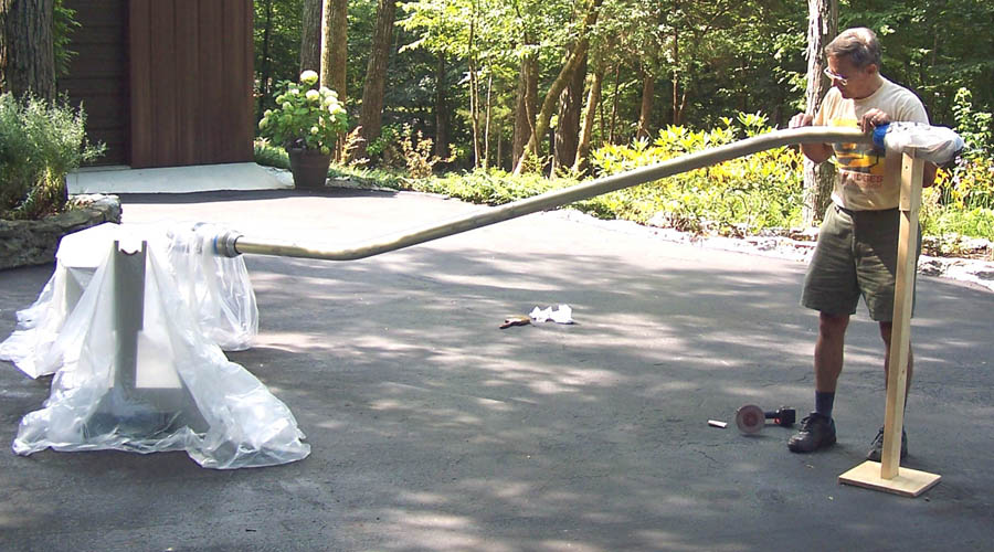 If I have learned anything at all, it is that first appearances may be misleading and that there may be some interesting surprises. After stripping the multiple layers of paint, I discovered that the refueling probe's "tube" sported a thin layer of golden-colored anodization. I also discovered that there were some small metal fatique fractures and that many small dents were very visible once the tube was clean. Never mind ... lots of filling and sanding took care of hiding the damage. Figure 2 shows sanding in progress ... at this point, my work log showed a time investment of just over 26 hours and the sanding is only in its first stages. (The time does not include building the stand on which the probe rests.)