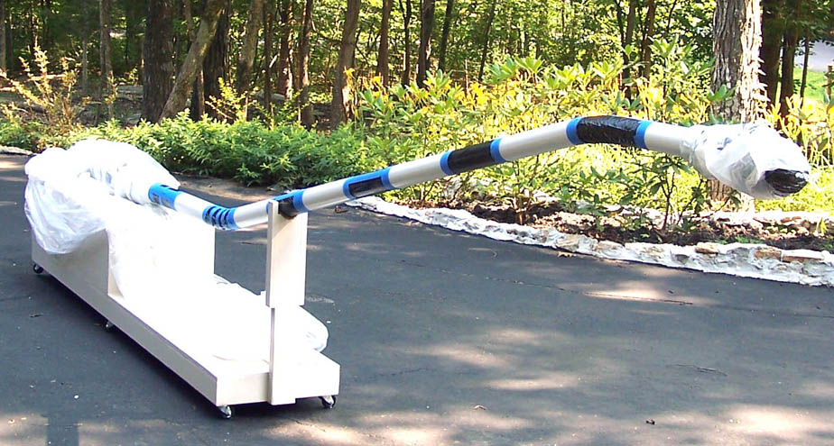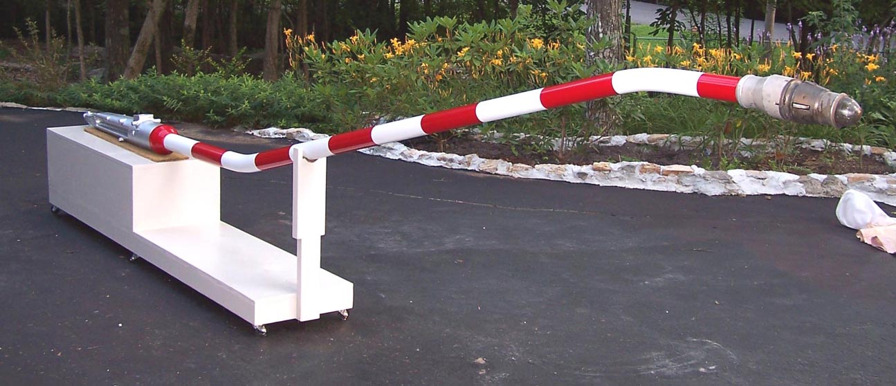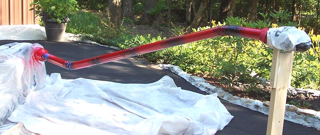 After the taping was completed, I was ready to spray the final two coats of red lacquer that would become the red bands on the white background. display stand. Figure 5 shows the probe after the red lacquer was applied.