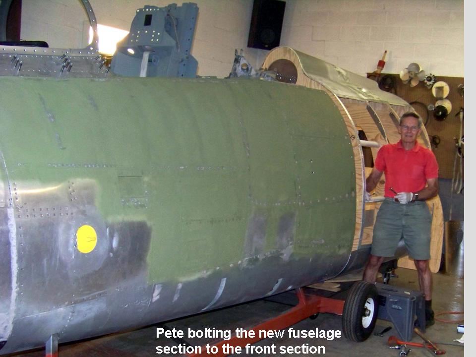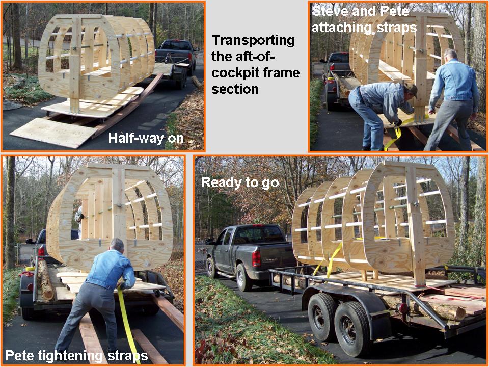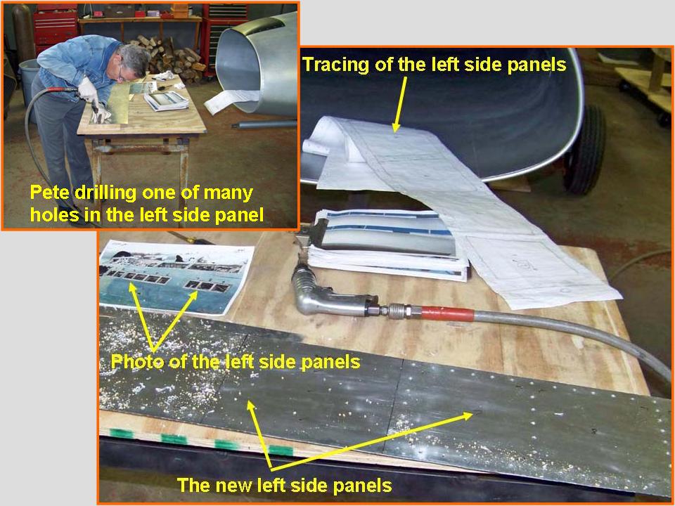 The composite picture in Figure 2, cell 01, shows us loading the new fuselage section on Steve's trailer. Cell 02 shows the new section in Steve's workshop. If you take a good look at the composite picture shown in cell 02, you can see that we have made some progress on the windscreen ... all the frame strips are done and the only remaining work will be the installation of the windscreen glass. (We need to find a good way to get new plastic pieces to fit the frame. We're hoping that this job can be farmed out -- molding thick plastic into the proper shape without causing distortions is likely to be well beyond our skill set. If you know somebody who might be able to get this job done without demolishing my strained piggy bank, please let me know!) Cell 03 shows the work done on the strip of inspection panels. Note the photo that shows the strip of inspection panels along the left side of the fuselage.