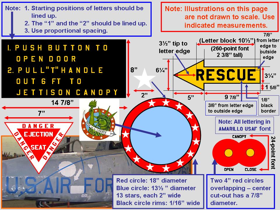 Figure 6, cell 01, documents additional template work. The pictures in the lower right corner shows the completed collection of paper lettering I cut and painted, as well as each letter's attachment to clear acetate. (I used the acetate sheets so that I could tape the letters in place to ensure their proper placement later.) The picture in the lower left corner shows the paper templates that I made to ensure the correct placement of the 48th TFW badge and the "streamer" that will display Col. Tolliver's name.