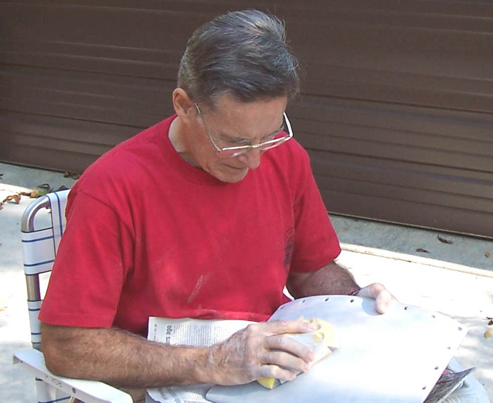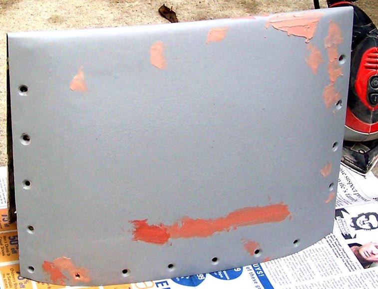 More sanding meant discovering more flaws, so Bondo came to the rescue again, followed by more filler paint, and more sanding ... followed by more filler paint and more Bondo. (See Figure 1, cell 2.) Naturally, more sanding was required after that ... followed by two more coats of filler paint to produce the results you see in Figure 1, cell 3. (As you can tell by looking at Figure 1, cells 2 and 3, I accidentally filled one of the corner screw holes -- I re-drilled that hole later ...)